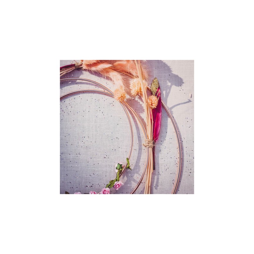 Sublimez votre décoration avec ce magnifique cerceau en métal rose gold. Parfait pour réaliser une magnifique couronne végétale avec des fleurs fraîches, des fleurs séchées ou du feuillage. Vous pouvez aussi utiliser ce cerceau pour confectionner un attrape-rêves pour un look boho chic. Décorez-le d’une guirlande lumineuse pour une ambiance romantique lors de vos fêtes ou d'une guirlande de ballons pour ajouter une touche festive et originale!