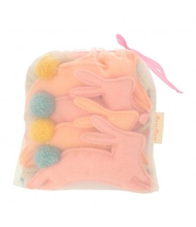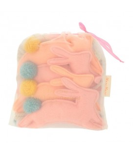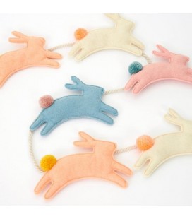 Rendez votre fête de Pâques ou de printemps incroyable avec cette magnifique guirlande en feutrine Meri Meri.Elle comporte 8 lapins rembourrés en feutre chiné aux couleurs pastel, comme le rose sombre, le bleu, la couleur pêche et le jaune pâle. Accrochez-la simplement pour une magnifique décoration, vous et vos invités allez adorer. Elle vient emballée dans un ravissant sac en organza, ce qui en fait également un excellent cadeau.