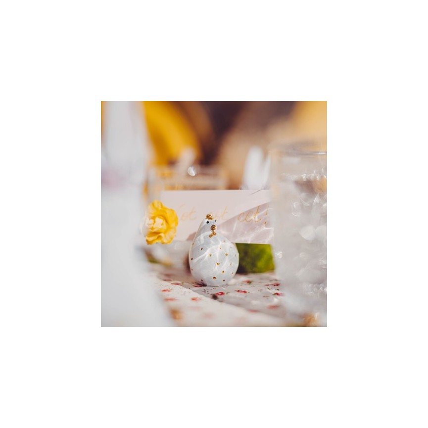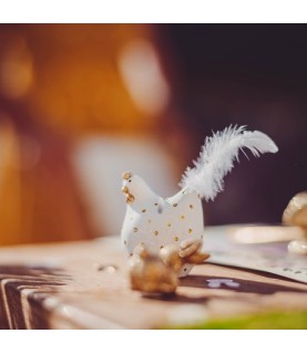 Ces mignonnes cocottes à pois dorés pailletés s'invitent à votre table! Ajoutez une touche champêtre à votre décoration de table avec ces adorables marque places en forme de cocotte avec plume.