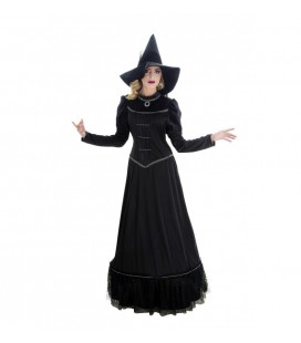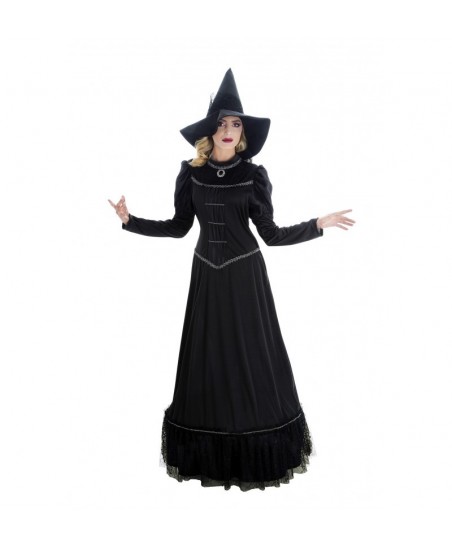Ce magnifique déguisement de sorcière magie noire comprend une longue robe noire bordée de dentelle en bas, un corsage travaillé et de manches bouffantes. La tenue est complétée par un magnifique chapeau pointu qui donne un look magiquement doux !