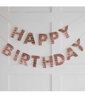 Impressionnez vos invités avec cette superbe guirlande d'anniversaire ! La guirlande comporte de magnifiques lettres à franges en rose gold épelant "Joyeux anniversaire" - parfaite pour une utilisation comme toile de fond de photomaton ou comme pièce maîtresse de vos décorations de fête. Accrochez-la aux murs ou aux portes pour être admirée !