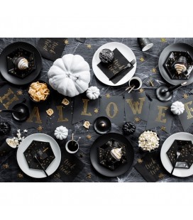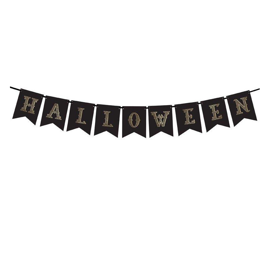 Annoncez le thème de la soirée grâce à cette guirlande Halloween! Guirlande noire et constituée de 9 fanions composant le mot "Halloween" en lettres dorées.