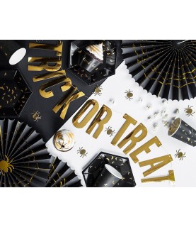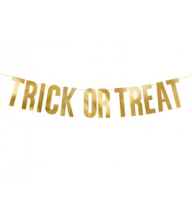 Guirlande Trick or Treat de couleur or miroir, à monter soi-même. L'ensemble contient 12 lettres et environ 2 m de ficelle dorée.