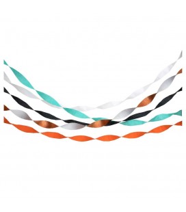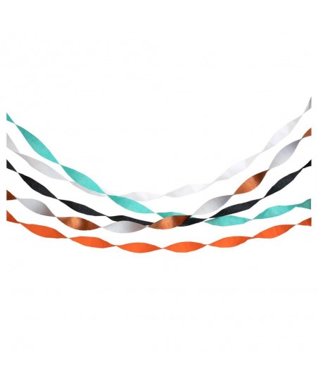 Ces serpentins en papier crépon en vert, orange, noir, blanc et un cuivre métallique chatoyant apporteront une touche festive tout en légèreté à votre fête d'Halloween. Magnifique en trônant derrière vos belles tables de réception ou pour décorer vos murs avec charme!
