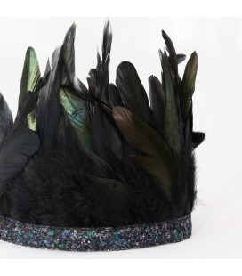 Si vous êtes à la recherche d'une coiffure dramatique parfaite pour une des plus élégantes célébrations, alors cette couronne est pour vous! Magnifiquement conçue avec des plumes noires et une chatoyante bande élastique.