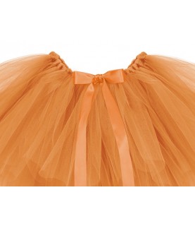 Jupe tutu en orange avec un ruban orange, tour de taille environ 80 centimètres, longueur environ 34 centimètres.