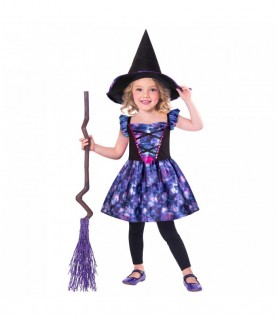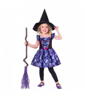 La robe présente différentes nuances de violet qui lui confèrent un élément mystique et qui est complété par le chapeau assorti inclus. C'est un joli déguisement idéal pour les fêtes d'Halloween.