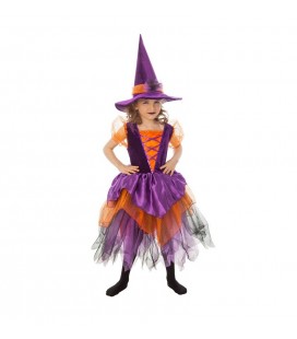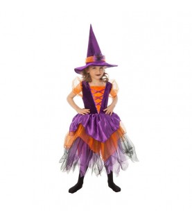 Ce joli déguisement comprend une robe composé d'une jupe de plusieurs couches en voile et dentelle, de courtes manches bouffantes voilées et d'un corsage lacé. La tenue est complétée par un magnifique chapeau pointu qui donne un look magiquement envoûtant!