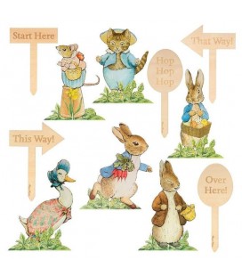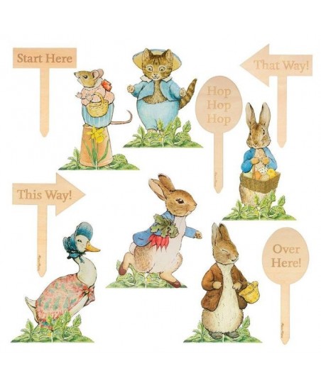 Peter Rabbit et ses charmants amis sont parfaits pour mener les petits à une chasse aux œufs de Pâques très spéciale. Cet ensemble comprend 6 cartes de personnages, dont Peter, Benjamin Bunny, Jemima Puddleduck, Tom Kitten et Mme Tittlemouse. Il comprend également 6 piquets en bois gravés avec des phrases amusantes pour les guider vers les trésors de bonbons. «Start Here», «This Way», «That Way», «Hop Hop Hop» et «Over Here» feront vraiment sourire les enfants!