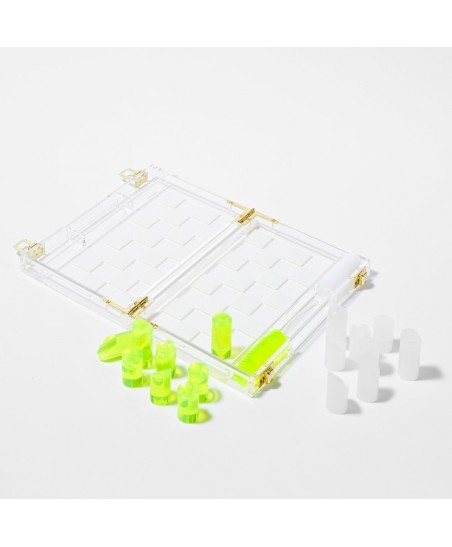 Offrez-vous un avantage concurrentiel avec cette interprétation unique d'un classique populaire. Le mariage de la couleur jaune néon et de la Lucite offre une touche haut de gamme à un jeu classique et indémodable autour de la logique et de la stratégie. Il deviendra à coup sûr un incontournable lors de vos soirées de jeu et vous procurera des moments de bonne humeur à partager! Son format petit et compact est idéal pour emporter partout!