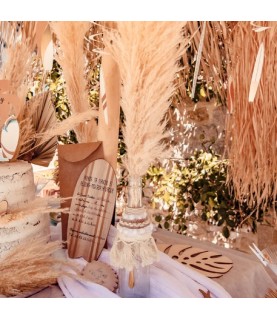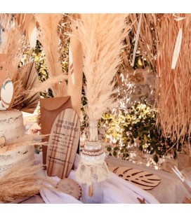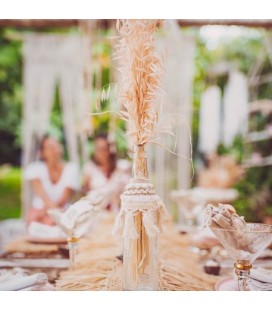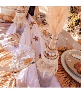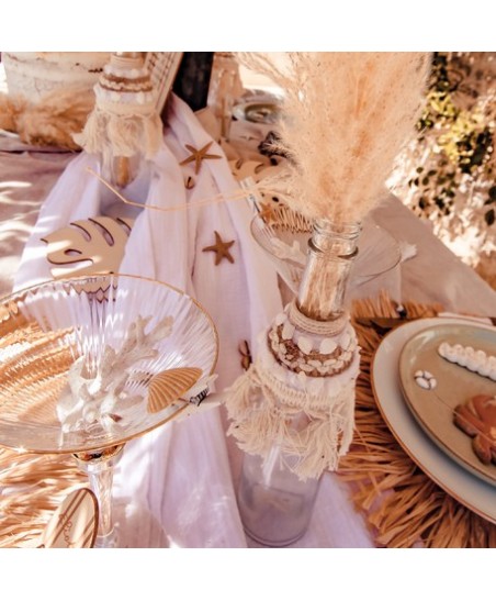 Cette magnifique bouteille en verre avec coquillages et pompons écrus est parfaite pour sublimer votre décoration ! Sur une table ou un buffet, elle ajoutera une magnifique touche raffinée et naturelle. Jouez avec la transparence de la bouteille et la couleur des détails. Vous pouvez également vous en servir comme d’un vase pour y mettre des fleurs ou pampas si vous voulez une décoration tendance bohème chic!