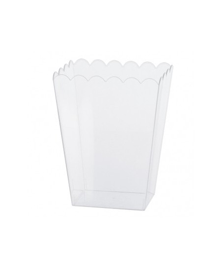 Ce contenant à popcorn transparent au design des boîtes à popcorn vintage est fonctionnel et décoratif. Parfait comme contenant pour les bonbons, popcorn ou toute autre friandises pour votre candy bar. Posez-le sur votre table et laissez vos invités se servir et se régaler! En plastique transparent. Lavable à la main et réutilisable à souhait. Ne convient pas pour les micro-ondes. Dimensions:: 15cm x 12.5cm x 19.5cm de hauteur