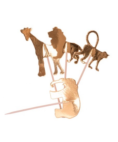 Découvrez la jungle avec ces magnifiques pics surmontés d'animaux dorés. Insérez lion, la girafe, le singe et l'éléphant dans vos desserts, boissons et vos petits sandwichs afin de décorer votre table et d'ajouter une touche festive et tropicale! Ils seront parfaits pour une fête tendance sur le thème de jungle, safari ou pour une fête à l'ambiance tropicale et exotique.