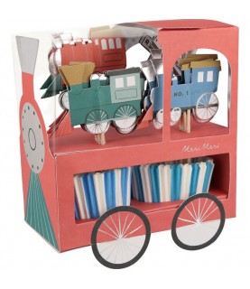 Tchou Tchou, partez en voyage mais n'oubliez pas les cupcakes! Transformez vos cupcakes et petits gâteaux en jolies gourmandises avec ce kit génial train de Meri Meri. Il est composé de toppers joliment illustrés ornés de détails en feuilles métallisées et des caissettes à gâteaux rayées.