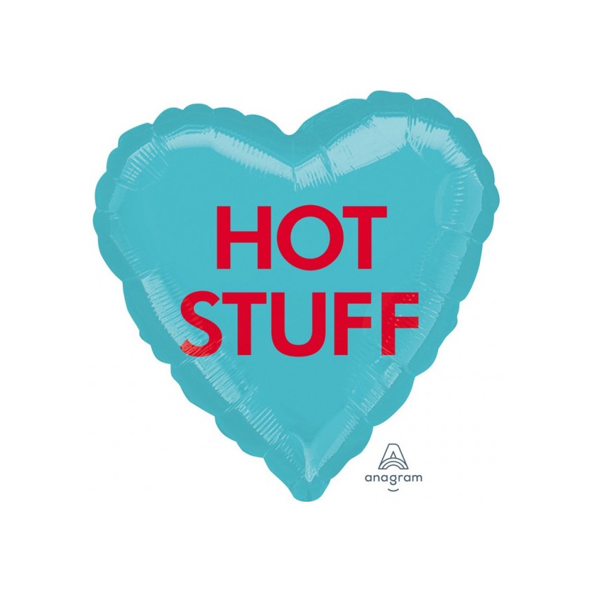Ce ballon mylar cœur avec message "HOT STUFF" apportera une touche fun et cool à votre déco de fête!