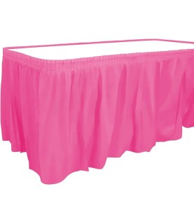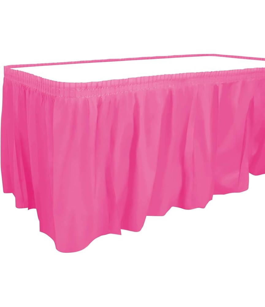 Jupe de table en platique de couleur magenta avec bande adhésive à l'endos.