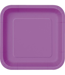 Chaque paquet comprend 14 assiettes en carton de couleur mauve.