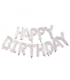 Ballons Lettres Happy Birthday Confetti Arc-en-Ciel