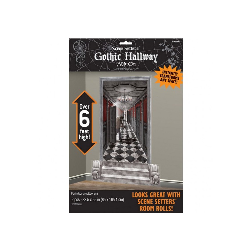 Cette mise en scène d'un couloir de style gothique posera le décor pour une nuit fantasmagorique ! Suivez le plancher en damiers noirs et blancs, rasez les murs rouges de sang et passez devant les portes en quantité infinie, seulement si vous osez ! Méfiez-vous de l'homme qui porte la hache !