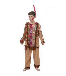 Ce déguisement se compose d'un pantalon et d'un haut aux motifs iconiques tribaux habillés de franges et d'une coiffe ornée d'une plume. En revêtant ce costume votre garçon se transformera en petite indien et fera sensation dans toute la tribu!