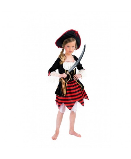 Ce déguisement Capitaine Pirate Fille est confectionné d'une robe mi-longue corsage avec un ourlet en dents de scie et un jupon en voile et des manches en dentelle. La tenue est complétée par un magnifique chapeau qui donne un look redoutablement envoûtant!