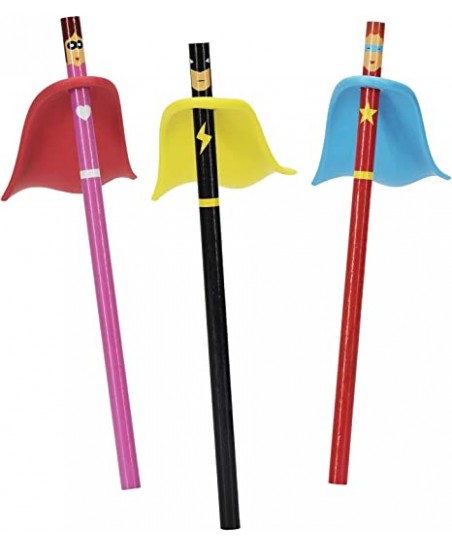 Ce joli crayon est surmonté d'une gomme en forme de cape qui apportera une jolie touche à votre bureau. Elle vous aidera à écrire de jolis textes et effacer par magie vos fautes et vos gribouillis! C'est plus sympa de faire ses devoirs avec un superhàrol dans la main!