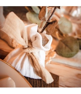 Ces jolis pochons en gaze de coton avec ruban blanc seront parfaits pour emballer et glisser vos petits cadeaux pour vos convives tout en apportant une touche moderne à votre décoration. Ils pourront ensuite être réutilisés pour ranger petits trésors et autres mignonneries. Une façon chic et eco-friendly de présenter ses petits présents!