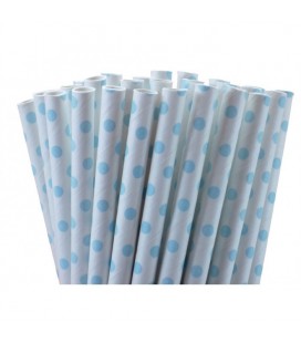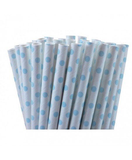 25 Pailles Papier à Pois Bleu Clair