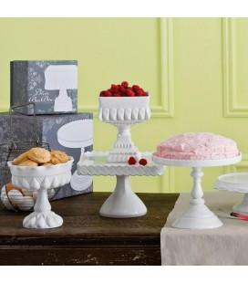 Plat à gâteau sur pied inspiré des formes victoriennes avec une jolie bordure travaillée qui fera honneur à tous vos gâteaux ou desserts. Il peut être utilisé seul ou ensemble en étage pour présenter avec style et élégance vos patisseries. Le cake stand vient dans une jolie boite cadeau idéale pour ranger ou offrir.