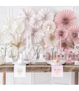 3 rosettes en papier pour une déco tendance. Ces jolies rosettes apporteront une touche originale à vos fêtes. Idéales pour un fond de photobooth, décorer les murs de votre fête ou de l'arrière-plan de vos buffets!