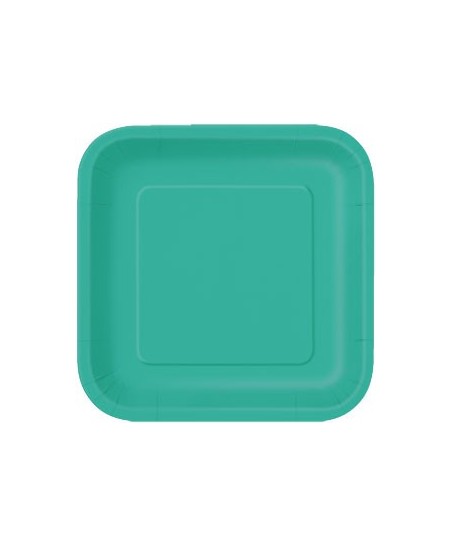 Chaque paquet comprend 14 assiettes en carton de couleur turquoise.