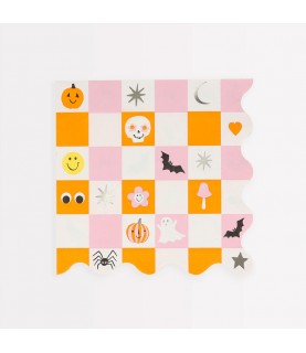 Ces serviettes épatantes mettront vos invités dans une ambiance groovy! Elles sont illustrées d'icônes d'Halloween avec détails en feuille d'argent qui feront sourire vos invités et ajouteront une touche pop à votre table de fête pour un look hyper groovy et tendance!