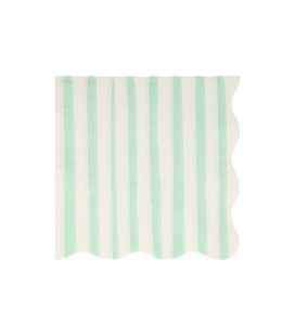 16 Grandes Serviettes à Rayures Menthe
