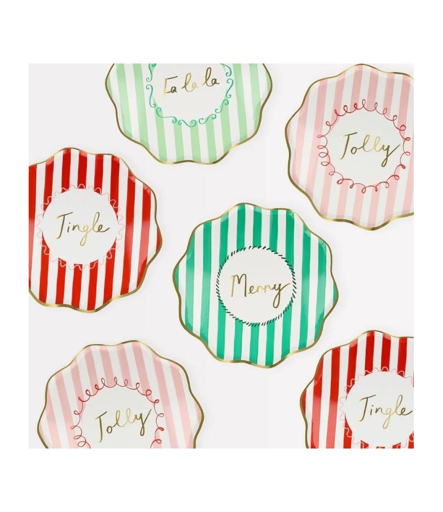 Ces assiettes festonnées avec inspiration vintage ont des inscriptions festives ajouteront une jolie touche à vos fêtes de Noël. Fa la la, 'tis the season to be jolly!