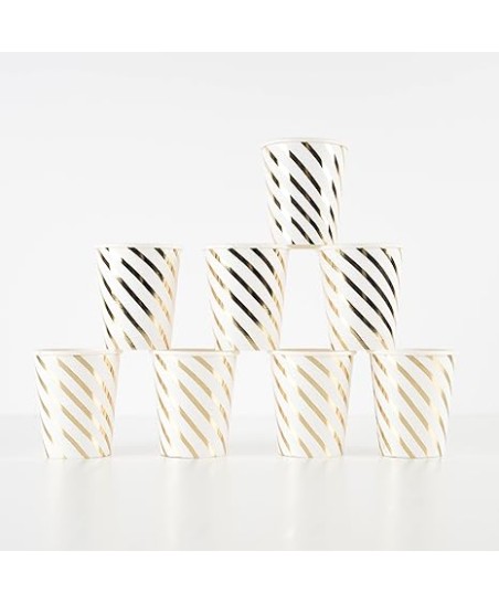 Ces gobelets rayés dorés signés Meri Meri illumineront votre table en ajoutant une touche festive et chic à vos fêtes et occasions spéciales.